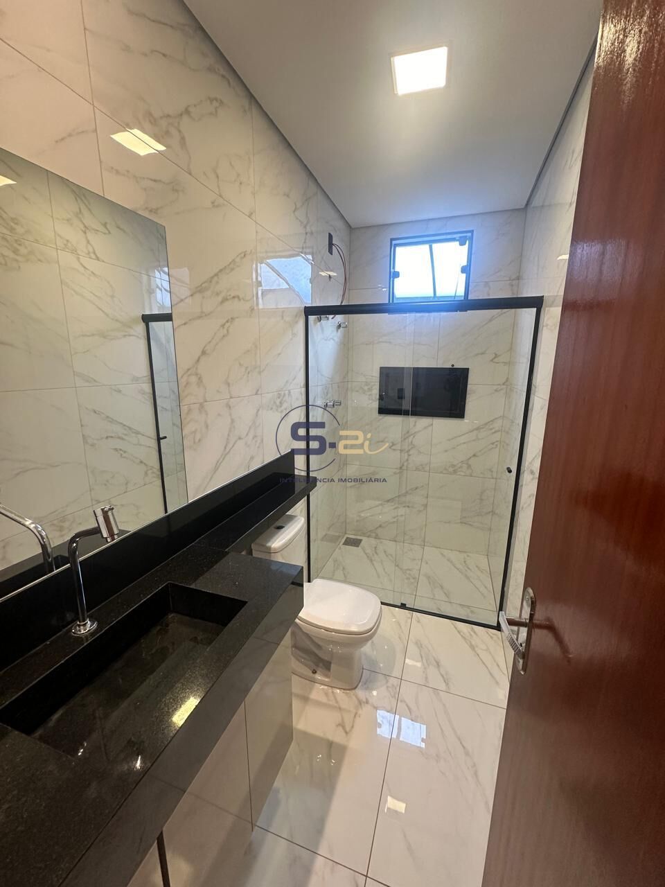 - Banheiro com box e espelho