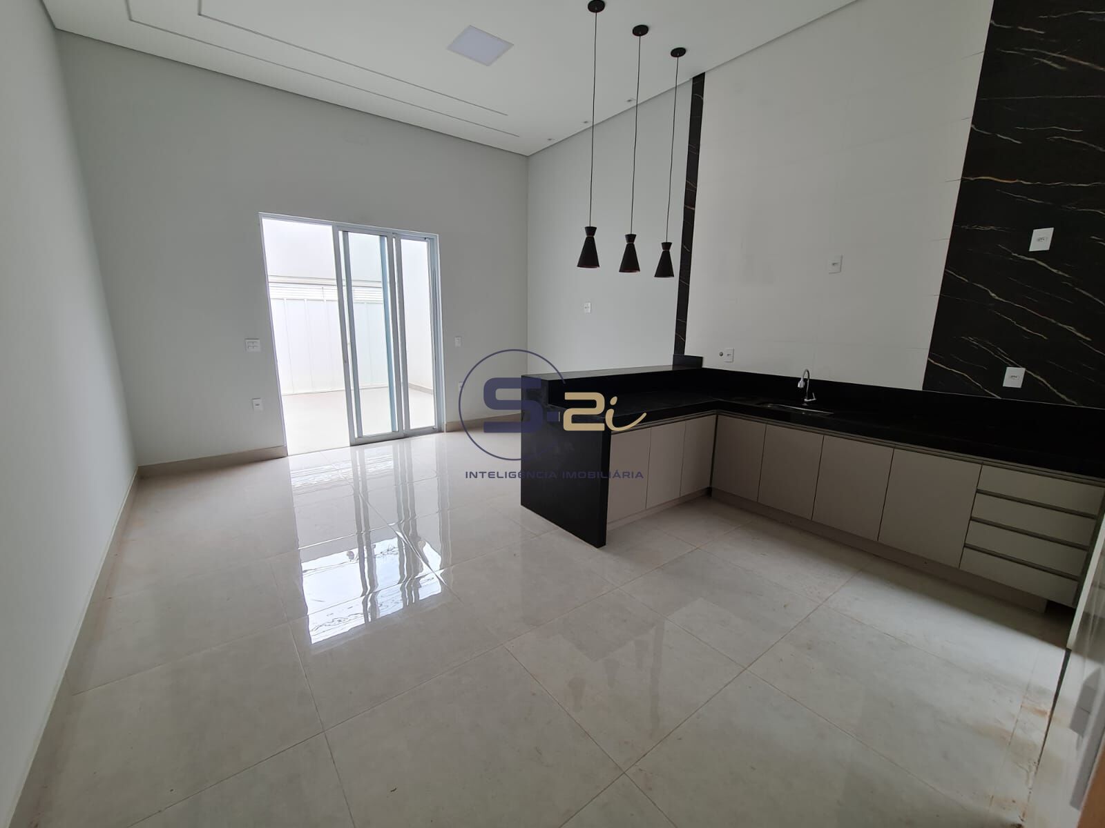 Conta com sala e cozinha amplas e integradas, com pé-direito mais alto, teto rebaixado e iluminação em LED, proporcionando um ambiente moderno, elegante e bem iluminado.