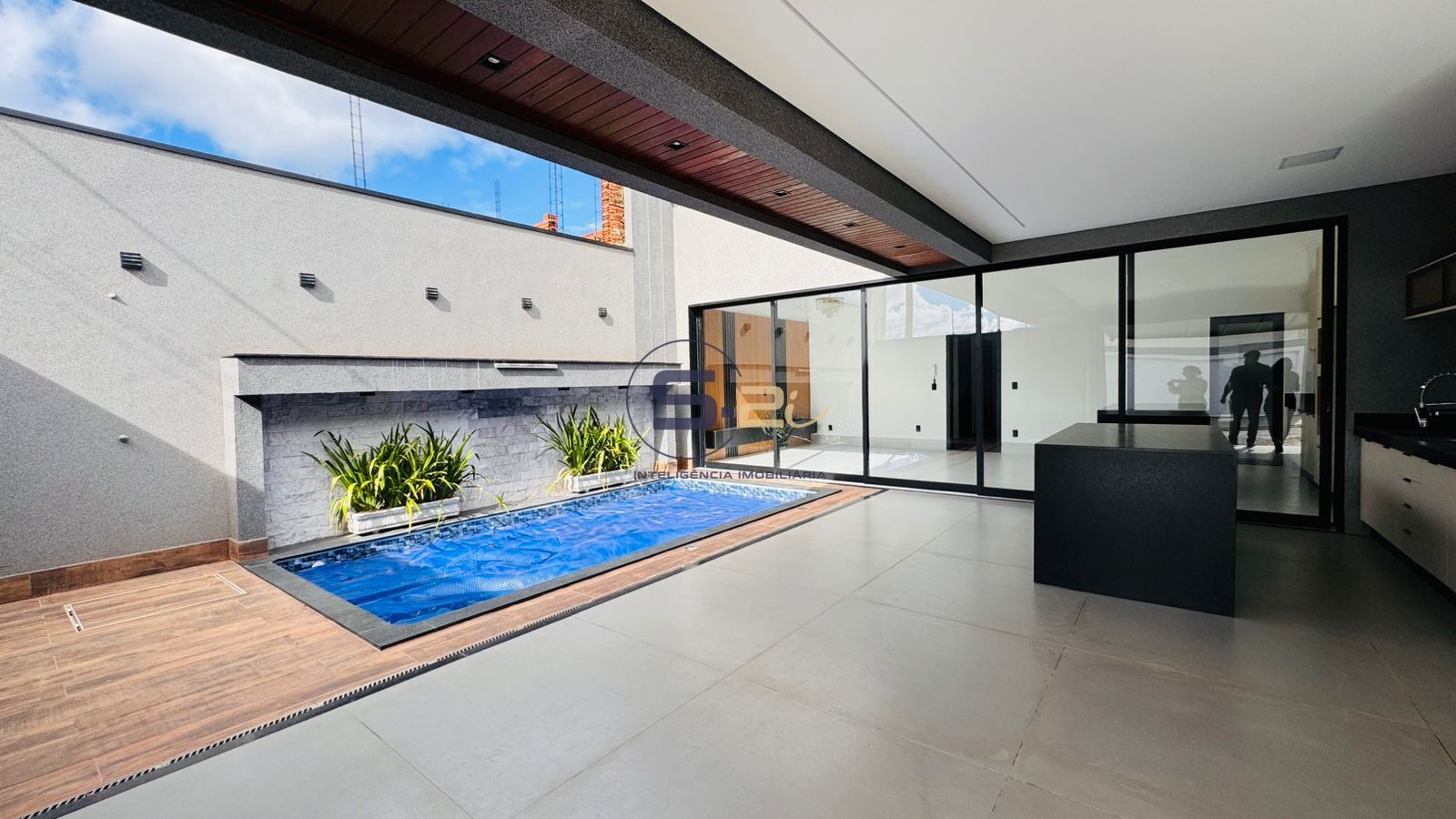A cozinha é prática e bem planejada, integrada à área gourmet — perfeita para momentos de lazer. O destaque fica para a piscina aquecida e os jardins planejados, que criam um ambiente agradável e acolhedor.